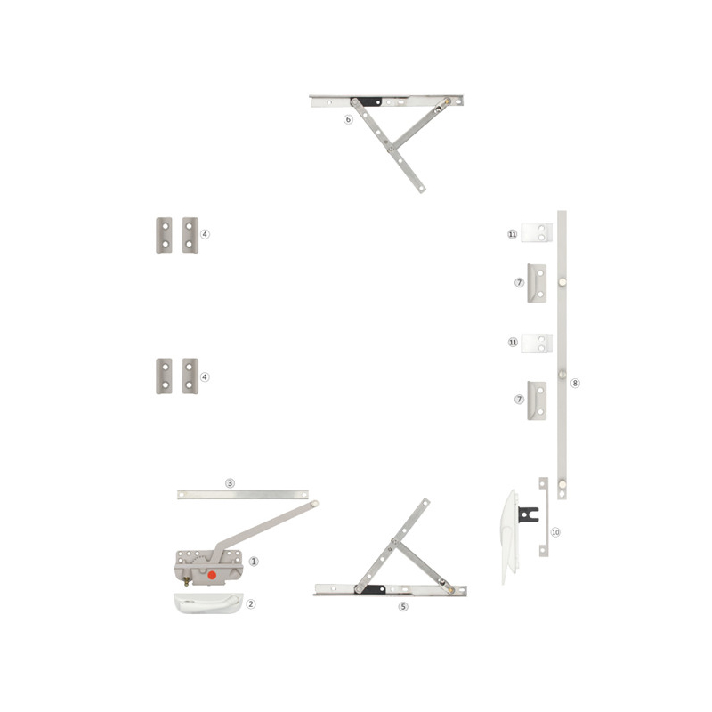该套美式开窗器平开系统可满足不同规格型材需求,安装方便。其休闲的开窗方式尽显生活的惬意,具备的自锁功能使开窗位置可随意指定,采光、通风随意方便。