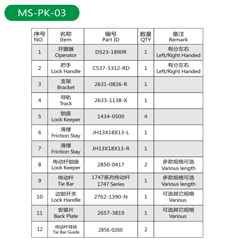 注:开窗器对窗扇没有承载作用,请根据窗扇重选择正确的铰链。